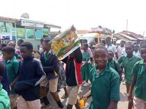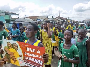 Student and invited guest recognized the need to celebrate Aids Day and the measures to put in place to avoid being infected with the AIDS virus. The event which involved people from fourteen years (14) upwards started around 10; 30am. Matured student with teachers, invited guests and the good people of sefwi Bekwai embarks on a float with brass band through the principal street of Bekwai with banners in their hands creating awareness for people to join in the celebration.