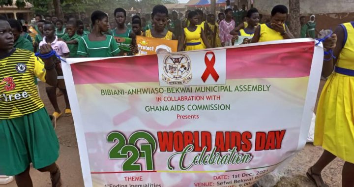 It has been another successful year for the celebration of the WORLD AIDS DAY. The Municipal AIDS committee in collaboration with the Bibiani Anhwiaso Bekwai Municipal Assembly celebrated this year’s world AIDS day at Sefwi Bekwai on Wednesday 1st December 2021 with the theme ENDING INEQUALITIES, END AIDS, END EPIDEMICS.